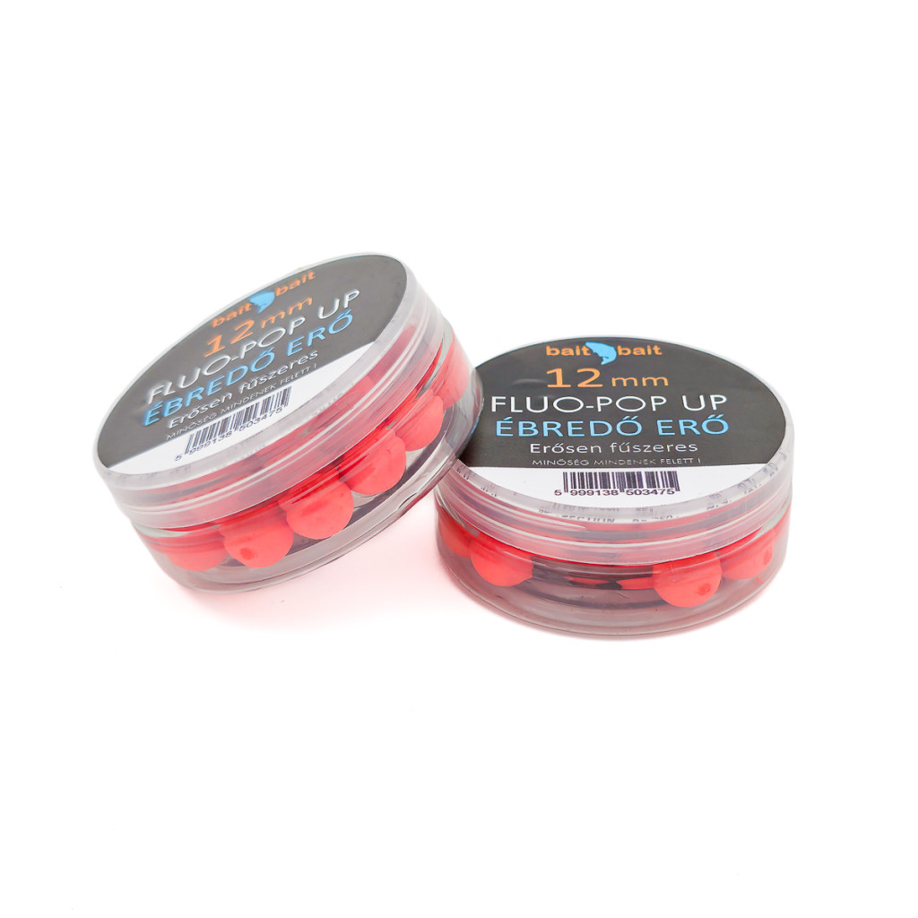 A Bait Bait Fluo Pop-Up bojlijaink nagyon élénk színekkel, erőteljes aromával, valamint hosszantartó lebegő képességgel rendelkeznek. Anyagukban extra mennyiségű étvágyfokozókat és aminókat tartalmaznak. A csalik csomagolás előtt is átesnek egy étvágyfokozó fürdőn, hogy minél aktívabban és minél frissebben várják, hogy bevessék Őket. Anyagösszetételük egyedülálló a magyar piacon, nagyon egyedi alapanyagok alkotják. Ezeket a csalikat volt a legnehezebb megalkotni, mivel itt is arra törekedtünk, hogy egy kimagasló minőségű csali kerüljön a horgászok kezébe. A fejlesztések alatt rengeteg keverési arányt kipróbáltunk, de itt is a tökéletességre törekedtünk, így sikerült ezeket a csalikat megalkotnunk. Ezen Pop-Upokat enyhén gumis állag, és szinte szétnyomhatatlan szerkezet jellemzi. A csalik szerkezete lehetővé teszi az utólagos plussz dippelést is.