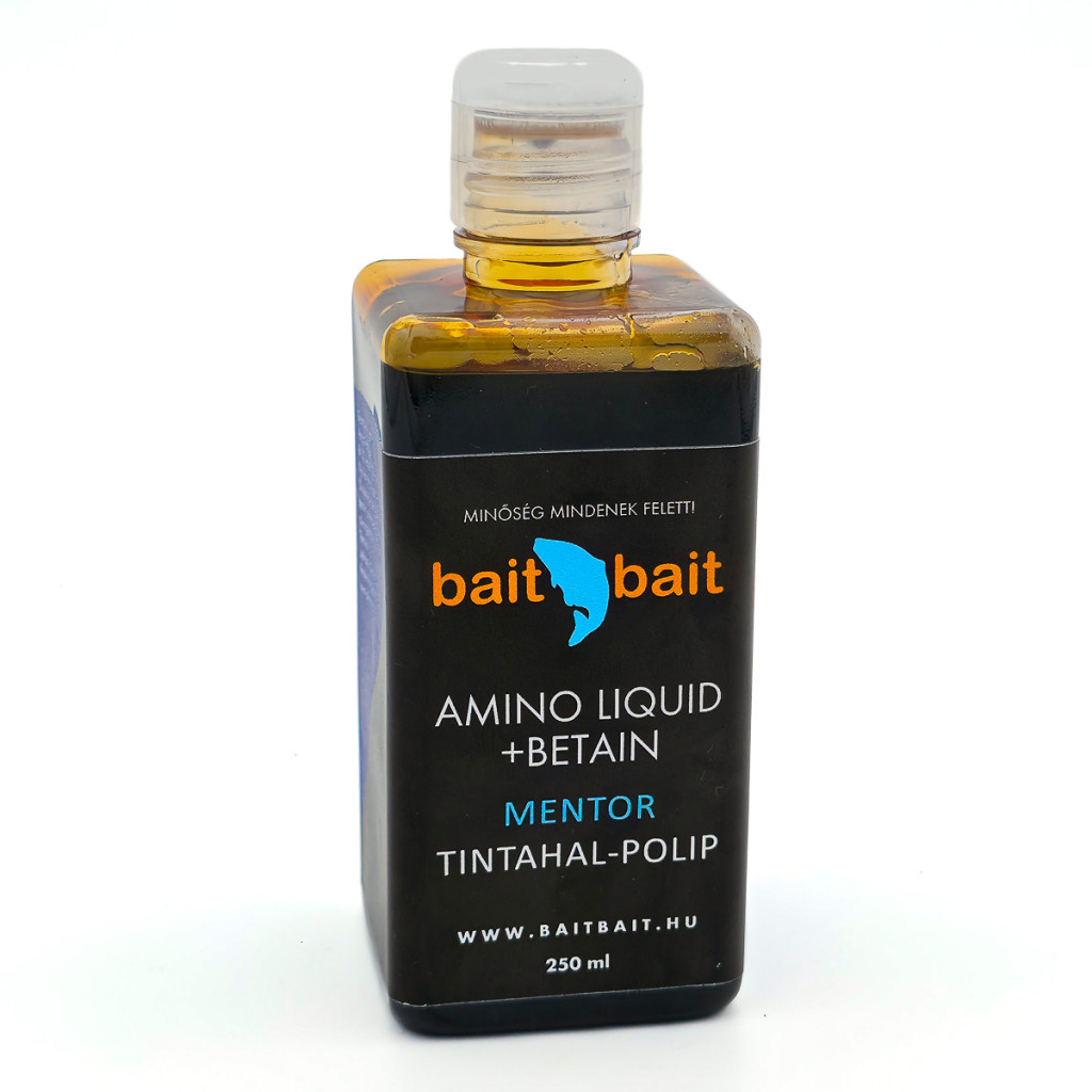 A Bait Bait Liquid Aminója egy különleges összetételű étvágyfokozó folyadék. Magas természetes cukortartalommal, ezenfelül egy speciális aminosav keverék teszi egyedibbé. Kúszó képességének köszönhetően a bojlikat lelocsolva mélyen a belsejébe szívódik. Speciális anyag összetevőjének köszönhetően a bojli felszínét elkezdi feloldani, így elérve gyorsabb hatást. Extra Betain tartalom jellemzi ezt a sűrű PVA barát folyadékot.