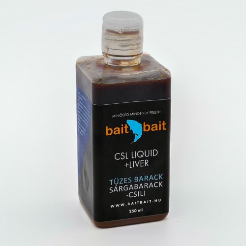 A Bait Bait által készített CSL + Liver Liquid magas alkoholtartalmú és egyben magas fehérjetartalmú étvágyfokozó folyadék. Leginkább a vízfenéken horizontálisan fejti ki csalogató hatását. Víz hőmérséklettől függetlenül alkalmazható. Bojlik, pelletek, magok utólagos ízfokozására kimondottan ajánlott.
